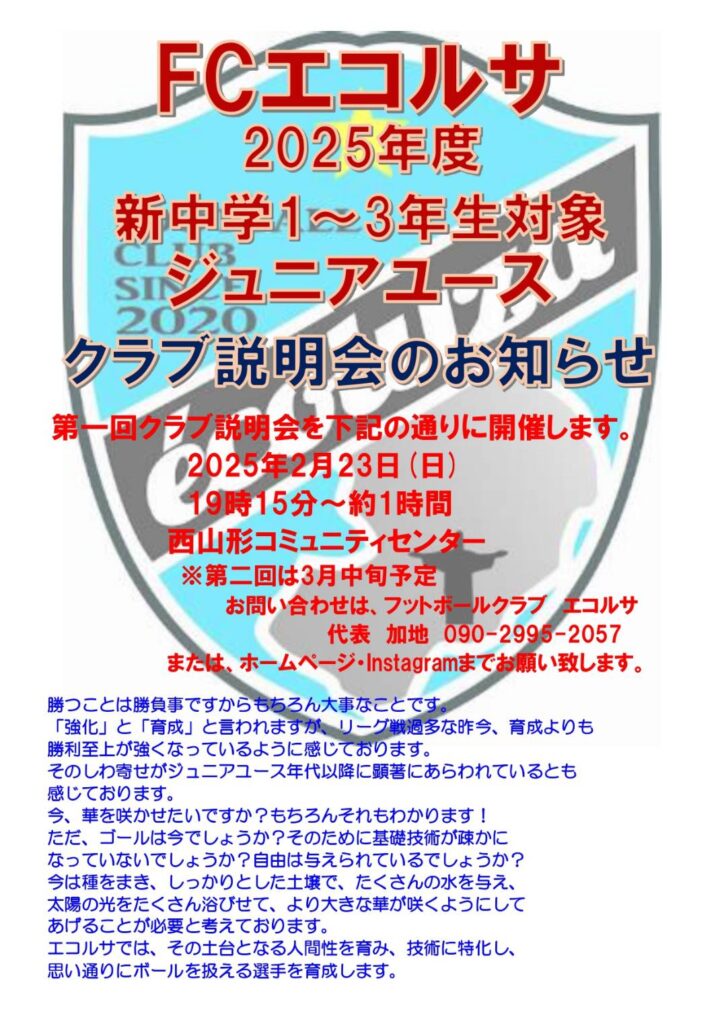 ジュニアユースクラブ説明会